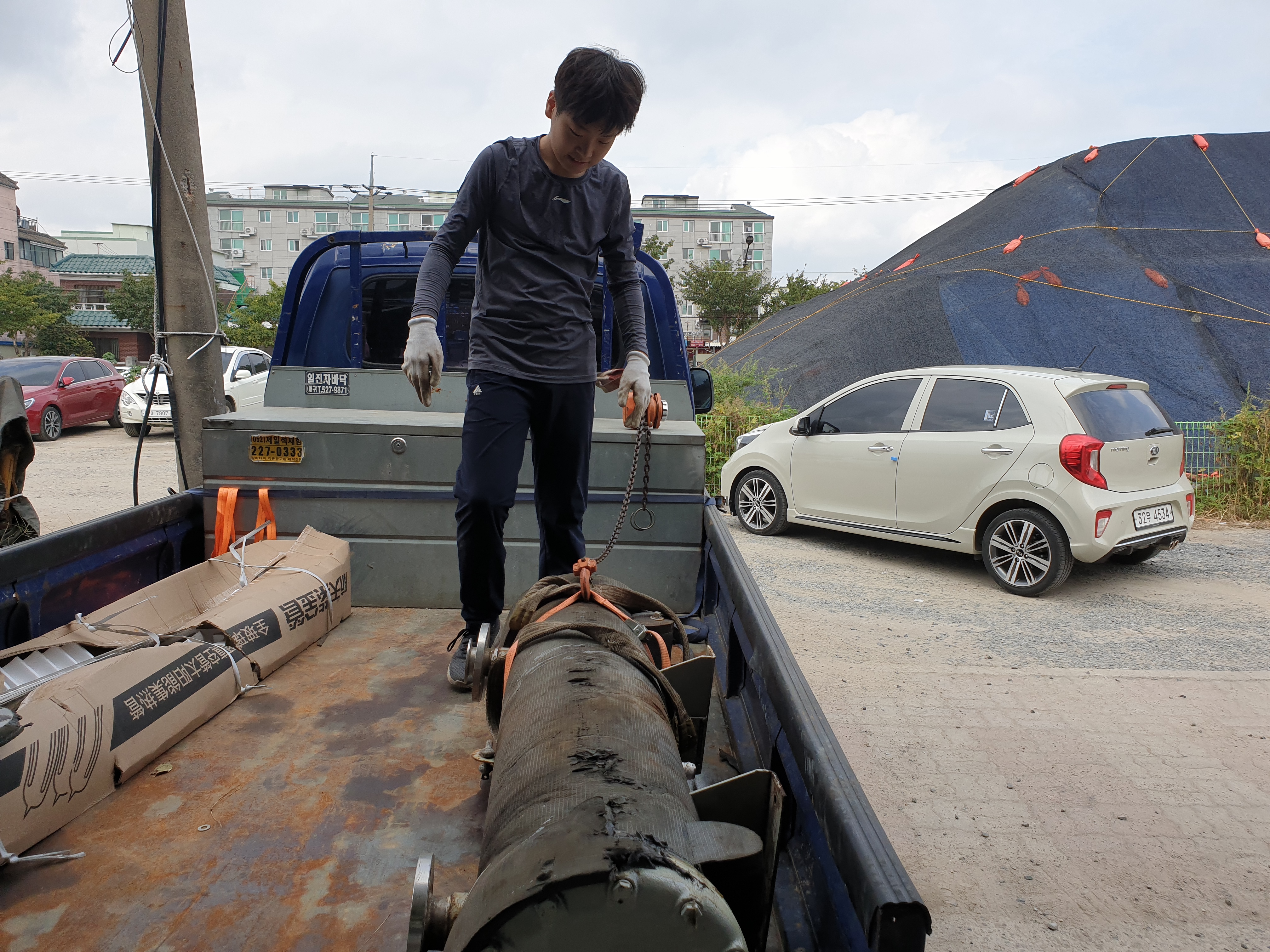 수성탕 명지탕 주택에 하차하는거 도와줌