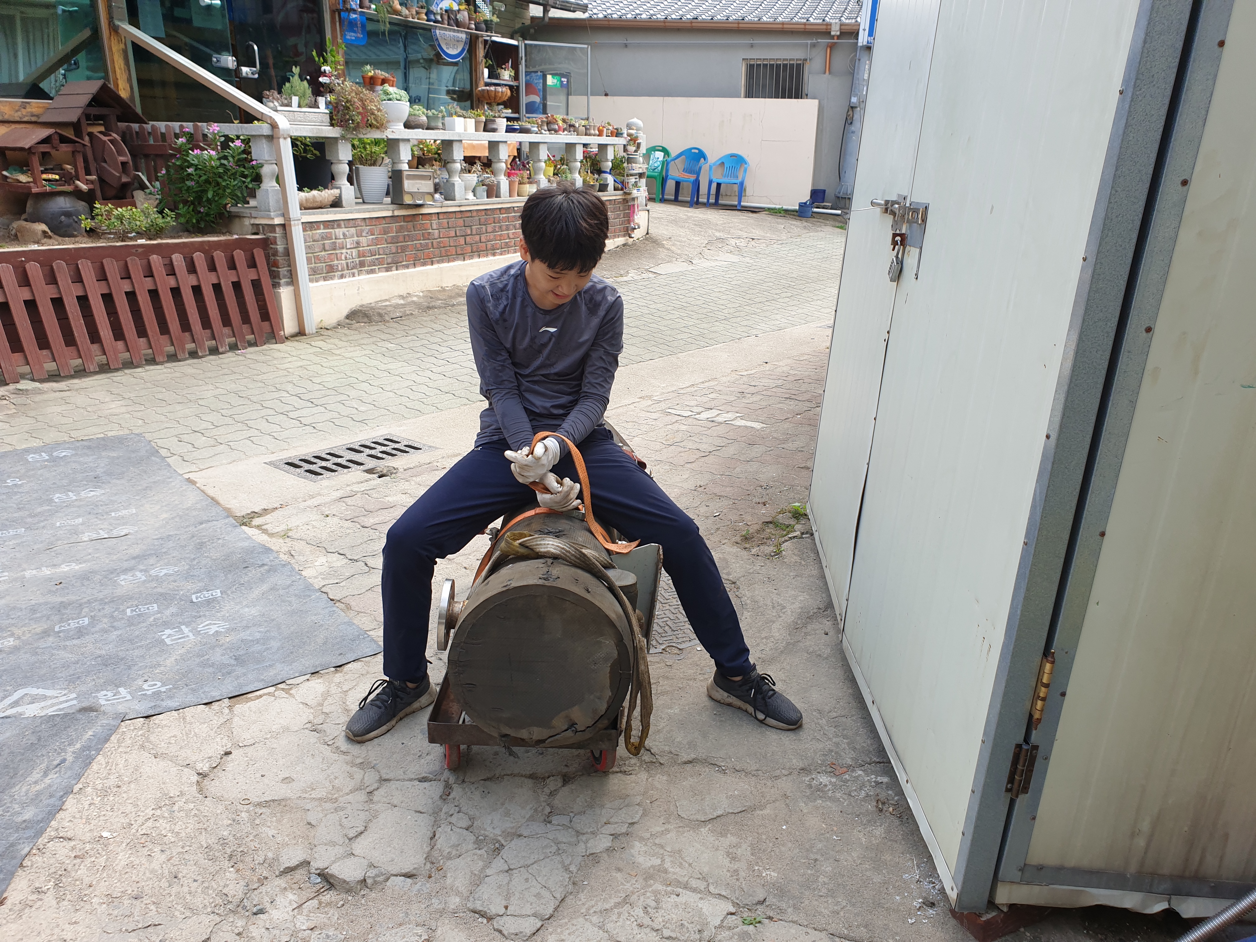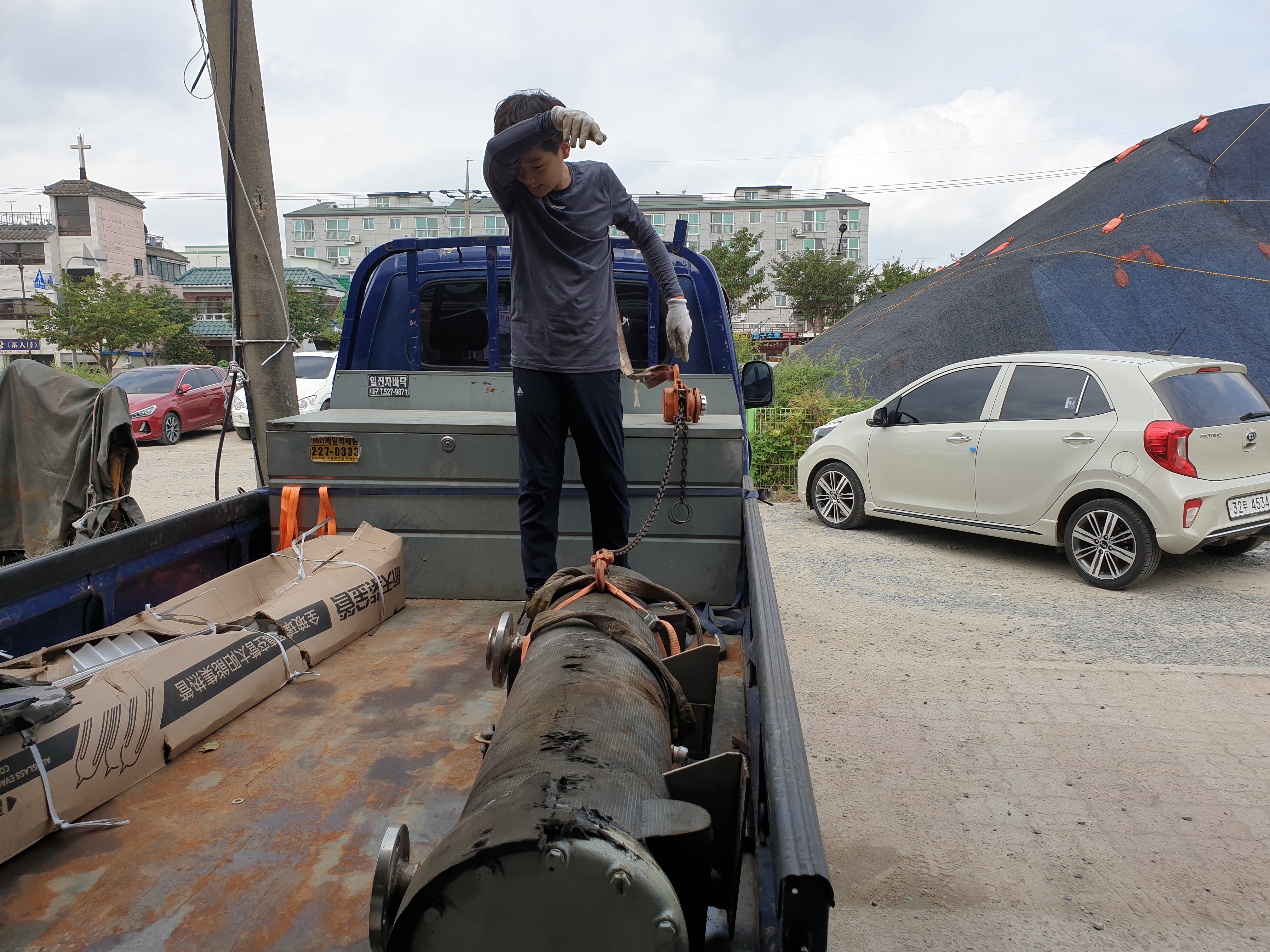 수성탕 명지탕 주택에 하차하는거 도와줌